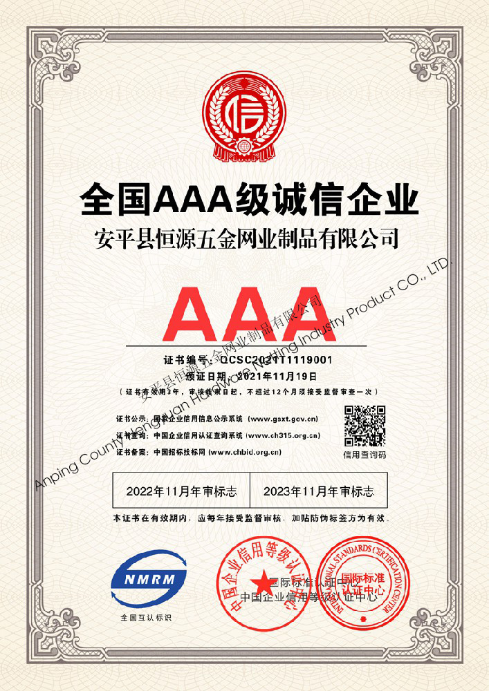多年來,安平縣恒源五金網業制品有限公司堅持“科技興企、質量立業”的經營理念和“誠心為本、客戶至上”的合作宗旨,優化生產工藝,打造優質產品,提供完善的服務,受到國內外客戶的一致好評,產品行銷全國各地,并出口美國、德國、韓國、日本、臺灣等國家和地區。